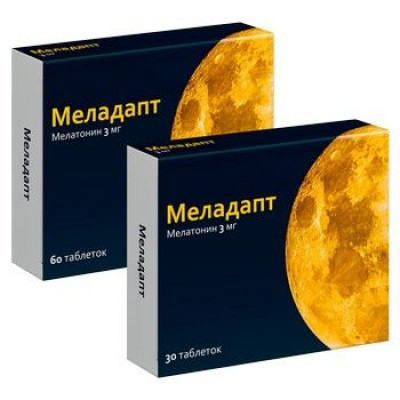 Принимать внутрь. При нарушении сна по 1 таблетке (3 мг) за 30-40 минут до сна, один раз в сутки. При десинхронозе в качестве адаптогена при смене часовых поясов - за 1 день до перелета и в последующие 2-5 дней - по 1 таблетке за 30-40 минут до сна. Максимальная суточная доза - 2 таблетки (6 мг). Применение у особых групп пациентов: Пожилые пациенты (старше 65 лет): С возрастом происходит снижение метаболизма мелатонина, что необходимо учитывать при выборе режима дозирования у пожилых пациентов. С учетом этого у пациентов пожилого возраста возможен прием препарата Меладапт за 60-90 минут до сна. Нарушения функции почек: Влияние различной степени нарушений функции почек на фармакокинетику мелатонина не изучено, поэтому препарат Меладапт необходимо принимать с осторожностью у пациентов с легкой и умеренной степенью почечной недостаточности. Применение препарата у пациентов с тяжелой почечной недостаточностью (КК менее 30 мл/мин) противопоказано (см. раздел «Противопоказания».)