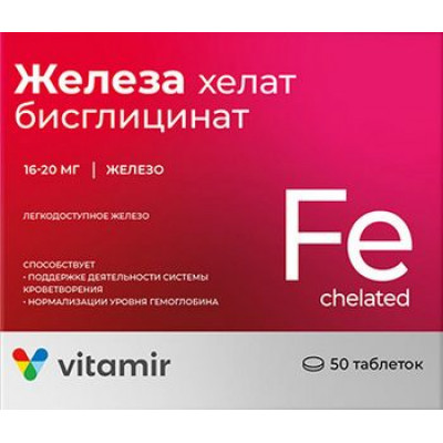 ВИТАМИР ЖЕЛЕЗА ХЕЛАТ БИСГЛИЦИНАТ №50 ТАБ. П/О /КВАДРАТ-С/