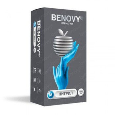 Перчатки медицинские диагностические (смотровые) одноразовые нестерильные "BENOVY" нитриловые неопудренные текстурированные на пальцах голубого цвета. Перчатки текстурированы на пальцах, что обеспечивает надежный захват инструмента. Гипоаллергенные из-за отсутствия протеинов натурального латекса. Неопудренные для снижения риска контактного дерматита. Форма перчатки - плоская, без разделения на правую и левую руку. Манжета закатана в венчик. Валик скручен вовнутрь, что препятствует скатыванию перчатки.