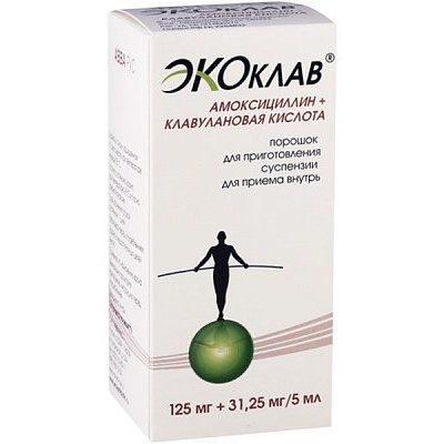 ЭКОКЛАВ 125МГ+31,25МГ/5МЛ. 25Г. ПОР. Д/СУСП. Д/ПРИЕМА ВНУТРЬ ФЛ. /АВВА РУС/