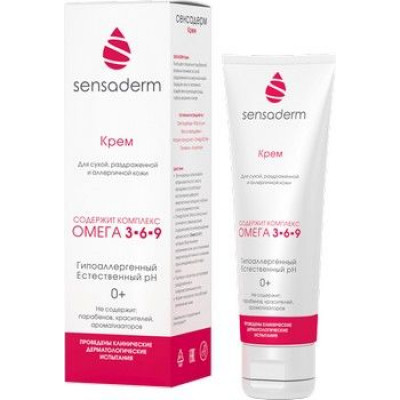 Косметическое средство для ухода за кожей детей с первых дней жизни. Ежедневный уход за сухой, раздраженной и аллергичной кожей SENSADERM Крем благодаря специально подобранной формуле ухаживает за сухой, раздраженной и аллергичной кожей. Защищает кожу от негативного воздействия окружающей среды, глубоко увлажняет и питает. Триглицериды каприновой и каприловой кислот, масло макадамии обеспечивают эластичность с защитными и увлажняющими свойствами; Omega Butter (Масло Инка-инчи (Сача-инчи)) отличается наибольшим содержанием полиненасыщенных жирных кислот Омега 3-6-9, которые обеспечивают увлажнение кожи, укрепление гидролипидного барьера кожи и снижение трансэпидермальной потери влаги; Пантенол и аллантоин увлажняет и успокаивает раздраженную кожу; Натрия гиалуронат способствует увлажнению кожи.