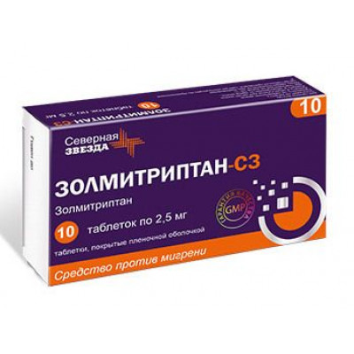ЗОЛМИТРИПТАН-СЗ 2,5МГ. №10 ТАБ. П/П/О