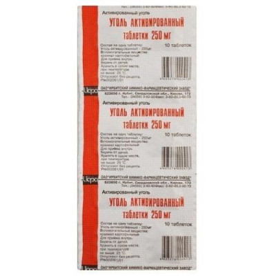 УГОЛЬ АКТИВИРОВАННЫЙ 250МГ. №10 ТАБ. /ИРБИТСКИЙ/