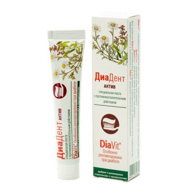 Зубная паста ДиаДент Актив оказывает мощное антибактериальное действие, снимает кровоточивость десен, укрепляет мягкие ткани полости рта.