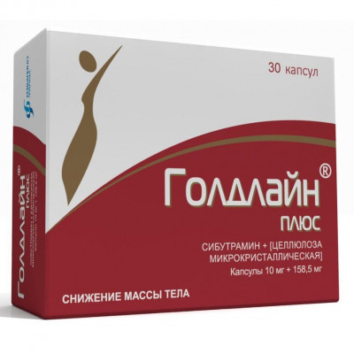 Рекомендуемая начальная доза сибутрамина 10 мг/сутки. Капсулы следует принимать утром, не разжевывая и запивая достаточным количеством жидкости (стакан воды). Препарат можно принимать как натощак, так и сочетать с приемом пищи. Если в течение 4‑х недель от начала лечения не достигнуто снижение массы тела менее 2 кг, то доза сибутрамина увеличивается до 15 мг/сутки. Лечение препаратом Голдлайн® ПЛЮС не должно продолжаться более 3‑х месяцев у пациентов, которые недостаточно хорошо реагируют на терапию, т.е. которым в течение 3‑х месяцев лечения не удается достичь снижения массы тела на 5% от исходного показателя. Лечение не следует продолжать, если при дальнейшей терапии, после достигнутого снижения массы тела, пациент вновь прибавляет в массе тела 3 кг и более. Длительность лечения не должна превышать 1 год, поскольку в отношении более продолжительного периода приема сибутрамина данные об эффективности и безопасности отсутствуют.