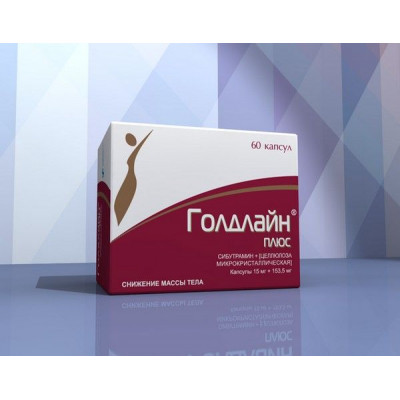 Голдлайн® ПЛЮС — комбинированный препарат, действие которого обусловлено входящими в его состав компонентами. Сибутрамин является пролекарством и проявляет свое действие in vivo за счет метаболитов (первичных и вторичных аминов), ингибирующих обратный захват моноаминов (серотонина, норадреналина, дофамина). Увеличение содержания в синапсах нейротрансмиттеров повышает активность центральных 5НТ‑серотониновых и адренергических рецепторов, что способствует увеличению чувства насыщения и снижению потребности в пище, а также увеличению термопродукции. Опосредованно активируя бета3-адренорецепторы, сибутрамин воздействует на бурую жировую ткань. Снижение массы тела сопровождается увеличением концентрации в плазме крови липопротеинов высокой плотности (ЛПВП) и понижением количества триглицеридов, общего холестерина, липопротеинов низкой плотности (ЛПНП) и мочевой кислоты. Сибутрамин и его метаболиты не влияют на высвобождение моноаминов, не ингибируют моноаминоксидазу (МАО); обладают низким сродством к большому числу нейромедиаторных рецепторов, включая серотониновые (5-HT1, 5-HT1А, 5-HT1В, 5-НТ2С), адренергические (бета1, бета2, бета3, альфа1, альфа2), дофаминовые (D1, D2), мускариновые, гистаминовые (H1), бензодиазепиновые и глутаматные (NMDA) рецепторы. Целлюлоза микрокристаллическая является энтеросорбентом, обладает сорбционными свойствами и неспецифическим дезинтоксикационным действием. Связывает и выводит из организма различные микроорганизмы, продукты их жизнедеятельности, токсины экзогенной и эндогенной природы, аллергены, ксенобиотики, а также избыток некоторых продуктов обмена веществ и метаболитов, ответственных за развитие эндогенного токсикоза.
