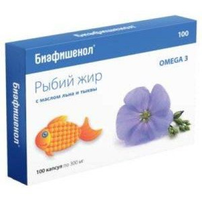 РЫБИЙ ЖИР БИАФИШЕНОЛ МАСЛО ЛЬНА+ТЫКВА+ВИТ.Е 300МГ. №100 КАПС.