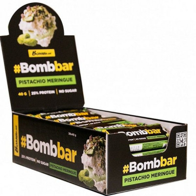 БОМББАР БАТОНЧИК ПРОТЕИН. ФИСТАШКОВАЯ МЕРЕНГА В ШОК. 40Г. [BOMBBAR]