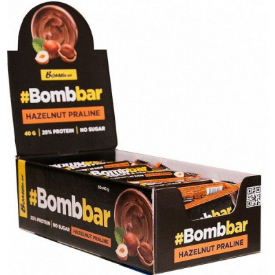БОМББАР БАТОНЧИК ПРОТЕИН. ФУНДУЧНОЕ ПРАЛИНЕ В ШОК. 40Г. [BOMBBAR]